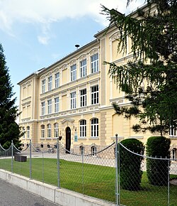 Die Volksschule ist ein dreigeschoßiger, späthistoristischer Bau mit leicht vorgestellten Seitentrakten.[2] | BDA-Hist.: Q37808342 Status: § 2a Stand der BDA-Liste: 2024-06-15 Name: Volksschule II GstNr.: .396 Volksschule II, Ferlach |