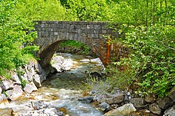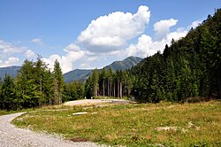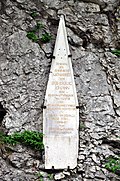 Die Inschriftentafel auf der Sapotnica erinnert an die Verbreiterung der Loiblstraße. Am mit 1615 bezeichneten Stein ist das Kärntner Wappen zu sehen.[15][16] | BDA-Hist.: Q37808436 Status: § 2a Stand der BDA-Liste: 2024-06-15 Name: Gedenkstein von 1615 GstNr.: 316/1 |