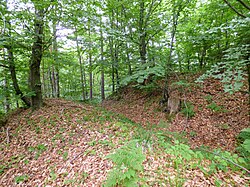 Im Wald auf einer Anhöhe befindet sich eine Wallanlage, offenbar mit gemörtelten Mauerresten. Hier wurden urgeschichtliche Keramikfunde gemacht.[7] 2019 wurde durch die Errichtung eines Forstwegs Teile der Anlage zerstört. | BDA-Hist.: Q37809021 Status: Bescheid Stand der BDA-Liste: 2024-06-15 Name: Wallanlage Hum GstNr.: 355/1 Wallanlage Hum |