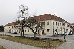Das alte Brauhaus ist ein stattlicher zweigeschoßiger Barockbau und steht gegenüber der Pfarrkirche. | BDA-Hist.: Q38051499 Status: Bescheid Stand der BDA-Liste: 2024-06-15 Name: Altes Brauhaus GstNr.: 27 |