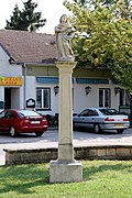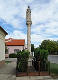 Steinfigur auf Weinlaubsäule; um 1700. | BDA-Hist.: Q38051799 Status: § 2a Stand der BDA-Liste: 2024-06-15 Name: Annasäule GstNr.: 539 Annasäule, Frauenkirchen |