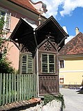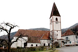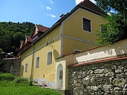 Das ehemalige Mesnerhaus stammt aus dem 15. Jahrhundert und trägt ein Schopfwalmdach. | BDA-Hist.: Q37972206 Status: Bescheid Stand der BDA-Liste: 2024-06-15 Name: Ehem. Mesnerhaus GstNr.: .18 |