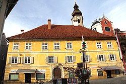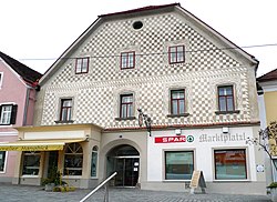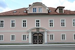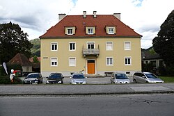Das ehemalige k.u.k. Postamt hat ein bemerkenswertes Biedermeierportal, das mit 1825 datiert ist. | BDA-Hist.: Q37769380 Status: § 2a Stand der BDA-Liste: 2024-06-15 Name: Ehem. Postgebäude GstNr.: .61 |