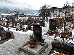 | Diese Datei zeigt das im Tiroler Kunstkataster erwähnte Objekt mit der ID 44824 . ( auf tirisMaps , PDF , weitere Bilder auf Commons , Wikidata ) | Eigenes Werk | Leitzsche | Datei:Fulpmes-Friedhof.JPG | |