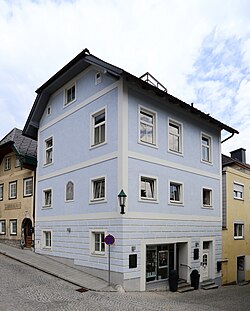 | Heute Wohnhaus im Gmundner Traundorf Dieses Bild zeigt das in Österreich unter der Nummer 110080 denkmalgeschützte Objekt. ( Commons , de , Wikidata ) | Eigenes Werk | Pendragon | Datei:Annastraße GM.JPG | |