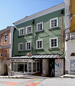| Das ehemalige Baderhaus befindet sich direkt neben dem Karmelitinnen-Kloster. Dieses Bild zeigt das in Österreich unter der Nummer 115161 denkmalgeschützte Objekt. ( Commons , de , Wikidata ) | Eigenes Werk | Pendragon | Datei:Baderhaus Gmunden.JPG | |