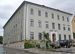 Das Wohngebäude in der Johann-Tagwerker-Straße 6 beherbergte früher die Städtische Sicherheitswache und die Naturalverpflegstation. Die Stuckatur, die darauf hinweist, ist mit dem Gmundner Wappen verziert und befindet sich oberhalb des Haupteingangs. | BDA-Hist.: Q37773680 Status: § 2a Stand der BDA-Liste: 2024-06-15 Name: Wohnhaus GstNr.: .402 Ehemalige Städtische Sicherheitswache und Naturalverpflegestation, Gmunden |