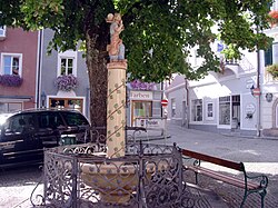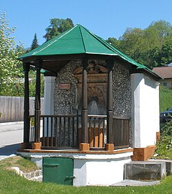 | Der Brunnen am Gmundner Klosterplatz wird mit dem beliebten Trinkwasser des "Heiligen Bründl" gespeist. Dieses Bild zeigt das in Österreich unter der Nummer 116403 denkmalgeschützte Objekt. ( Commons , de , Wikidata ) | Eigenes Werk | Pendragon | Datei:Brunnen am Klosterplatz.JPG | |