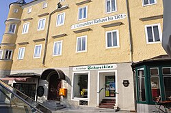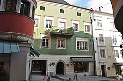 Das Ledererhaus in der Linzer Straße Nr. 5 in Gmunden wurde 1588 erstmals erwähnt. Über mehrere Jahrhunderte hindurch wurde hier das Lederergewerbe ausgeübt. Fassadenschmuck und Fresko stammen aus dem 18. Jahrhundert. | BDA-Hist.: Q37977681 Status: Bescheid Stand der BDA-Liste: 2024-06-15 Name: Bürgerhaus, Ledererhaus GstNr.: .132 |
