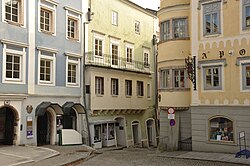 BDA-Hist.: Q37763527 Status: Bescheid Stand der BDA-Liste: 2024-06-15 Name: Bürgerhaus, Seilerhaus, Färberhaus GstNr.: .114/3, .106/1, .115, .114/1 |