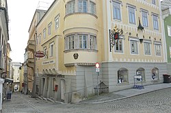 Die heutige Bäckerei wurde als „Bäck im Bruckviertel“ 1869 gegründet. | BDA-Hist.: Q37977663 Status: Bescheid Stand der BDA-Liste: 2024-06-15 Name: Bürgerhaus, Bäckerhaus GstNr.: .123 |