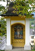 Kapelle in der Nähe des Kinderspielplatzes in Weyer. Inschrift an der bemalten Decke: „Johann und Katharina Kagerer, renoviert 1919“ | BDA-Hist.: Q37775520 Status: § 2a Stand der BDA-Liste: 2024-06-15 Name: Wegkapelle GstNr.: 225/9 Gmunden Wegkapelle Weyerstraße |