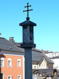 Die Pestsäule beim Kapuzinerkloster wurde 1674 vom Stadtrichter J. G. Vorrig errichtet. Ursprünglicher Standort: Linzer Straße 2. | BDA-Hist.: Q37775536 Status: § 2a Stand der BDA-Liste: 2024-06-15 Name: Pestsäule GstNr.: 54 |