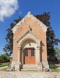 Neugotische Gruftkapelle als Backsteinbau mit Rundapsis im Jahre 1897 errichtet. | BDA-Hist.: Q37785982 Status: § 2a Stand der BDA-Liste: 2024-06-15 Name: Friedhofskapelle GstNr.: 408 Friedhofskapelle Mittergrabern, Gemeinde Grabern |