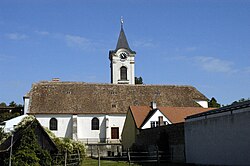 Kleine Kirche mit Rundapsis, Segmentbogenfenstern und Südturm aus dem Ende des 18. Jahrhunderts. | BDA-Hist.: Q37787395 Status: § 2a Stand der BDA-Liste: 2024-06-15 Name: Katholische Filialkirche heiliger Jakob GstNr.: 144 |