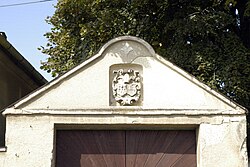 Im Dreiecksgiebel des Gartentores zum Pfarrhof von Mittergrabern befindet sich eine mit 1797 bezeichnete Wappenkartusche mit dem Wappen von Baumburg.[2] | BDA-Hist.: Q37821930 Status: Bescheid Stand der BDA-Liste: 2024-06-15 Name: Wappenkartusche GstNr.: 75/2 |