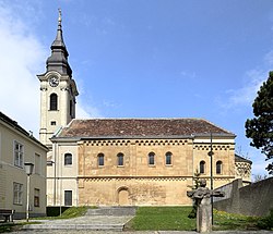 Der spätromanische Saalbau aus dem 1. Drittel des 13. Jahrhunderts wurde seither mehrfach – insbesondere nach einem Brand im Jahre 1809 – aus- und umgebaut. Bekannt ist die Kirche wegen der Steinernen Bibel an der Außenseite der Apsis, einer besonderen Art der Biblia pauperum. | BDA-Hist.: Q2082963 Status: § 2a Stand der BDA-Liste: 2024-06-15 Name: Kath. Pfarrkirche Mariä Geburt GstNr.: 1 Pfarrkirche Schöngrabern |