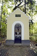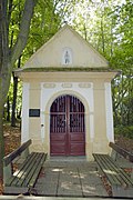 Anstelle einer kleinen Kirche vom Ende des 17./Anfang des 18. Jahrhunderts wurde im Jahre 1846 die dreieckübergiebelte Wegkapelle mit pilastergerahmter Rundbogenöffnung erbaut. | BDA-Hist.: Q37787058 Status: § 2a Stand der BDA-Liste: 2024-06-15 Name: Wegkapelle GstNr.: 589 |
