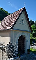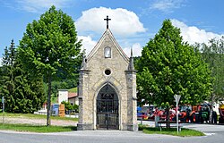 Die Florianikapelle wurde 1866 in neugotischen Formen erbaut, unter einem Satteldach eine schmiedeeiserne Gittertür zwischen fialenbekrönten Eckstrebepfeilern, in einer Nische über der Giebelluke eine Statuette des hl. Florian. | BDA-Hist.: Q37889988 Status: Bescheid Stand der BDA-Liste: 2024-06-15 Name: Wegkapelle Mariahilf, Florianikapelle GstNr.: 2103/3 |