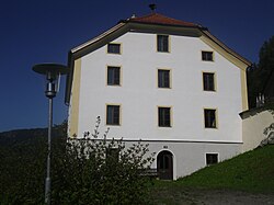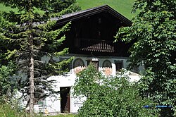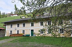 Der zweigeschoßige Einhof mit vorkragendem Satteldach stammt im Kern aus dem 17. Jahrhundert. Der Wohnteil ist gemauert, der rückwärts anschließende Wirtschaftsteil über gemauertem Erdgeschoß in Ständerbauweise aufgeführt. Die Giebelfassade ist mit einem polygonalen Obergeschoßerker mit figuralen Darstellungen in den Brüstungsfeldern und großteils übermalter Architekturmalerei gestaltet. Am Obergeschoß befinden sich Wandbilder der hll. Florian, Georg und Martin, sowie Medaillons mit Mariahilf und der hl. Anna aus der ersten Hälfte des 18. Jahrhunderts. Im Inneren hat sich im Erdgeschoß ein Stichkappengewölbe erhalten.[20] | BDA-Hist.: Q37986960 Status: Bescheid Stand der BDA-Liste: 2024-06-15 Name: Bauernhaus Unterer Fürst GstNr.: 1256/3 |