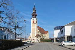 Der zweigeschoßige, als Einspringer ausgeführte Dreiseithof wurde im 18. Jahrhundert urkundlich genannt, wobei der secessionistische Fassadendekor mit barockisierenden Elementen aus der Zeit um 1900 stammt. | BDA-Hist.: Q37723137 Status: § 2a Stand der BDA-Liste: 2024-06-15 Name: Ehem. Bauernhof Paschlberger, heute Altersheim (südlicher Objektteil) GstNr.: 906/1 |
