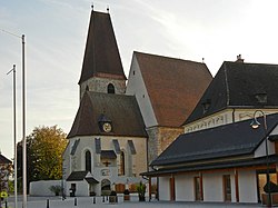 Eine spätgotische Kirche mit einem massiven Südturm. Der Hochaltar und die Kanzel stammen aus der Mitte des 18. Jahrhunderts. Die Seitenaltäre sind neugotisch und wurden Ende des 19. Jahrhunderts errichtet.[2] | BDA-Hist.: Q37940913 Status: § 2a Stand der BDA-Liste: 2024-06-15 Name: Kath. Pfarrkirche hl. Severin und Friedhof GstNr.: 762 Saint Severin Church (Haidershofen) |