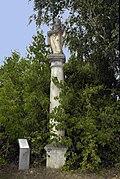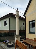Die Figurengruppe Gnadenstuhl auf toskanischer Säule mit Postament ist mit 1777 bezeichnet. | BDA-Hist.: Q37806556 Status: § 2a Stand der BDA-Liste: 2024-06-15 Name: Gnadenstuhl, Pest-/Dreifaltigkeitssäule GstNr.: 94 |
