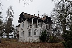 Die Direktorenvilla der Rothermann’schen Zuckerfabrik wurde 1909/10 erbaut.[2] Sie ist zweigeschoßig und in den Formen des Heimatstils gehalten. | BDA-Hist.: Q112898413 Status: Bescheid Stand der BDA-Liste: 2024-06-15 Name: Villa GstNr.: 716/2 |