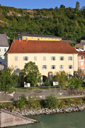 Das ehemalige Zollhaus in Hochburg-Ach ist im Kern aus dem 16. Jahrhundert. Durch Um- und Zubauten im Spätbarock und im Biedermeier entstand das Haus in der bestehenden Form. Auf dem Abhang zur Salzach stehend hat das Haus drei Geschoße, wobei das Erdgeschoß auf Pfeilern mit Korbbögen ruht.[2] | BDA-Hist.: Q38024510 Status: Bescheid Stand der BDA-Liste: 2024-06-15 Name: Ehem. Zollhaus GstNr.: .3 |