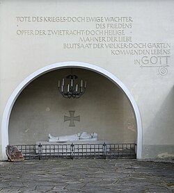 Nach Plan von Emanuel Thurnher, Figur liegender Soldat von Franz Plunder, 1935/36 | BDA-Hist.: Q38083713 Status: § 2a Stand der BDA-Liste: 2024-06-15 Name: Kriegerdenkmal GstNr.: .1 Kriegerdenkmal Hohenems |