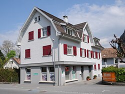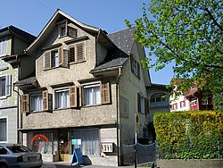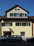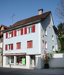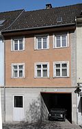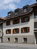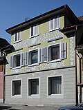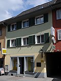 | aus dem DEHIO Vorarlberg 1983 : Harrachgasse Nr.5 in Hohenems ; Wohnhaus, einfacher Jugendstilputz (Heute ist davon nichts mehr zu sehen). Info Das Objekt steht unter Denkmalschutz . | Eigenes Werk Quelle: Dehio Vorarlberg | böhringer friedrich | Datei:Harrachgasse 5 Hohenems.JPG | |