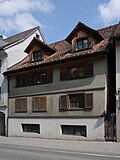 In dem Wohnhaus mit steilem Giebel wurde im Jahr 1804 der jüdische Sakralmusiker Salomon Sulzer geboren. | BDA-Hist.: Q38107514 Status: Bescheid Stand der BDA-Liste: 2024-06-15 Name: Wohnhaus GstNr.: .106 |