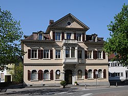 Das dreigeschoßige villenartige Bürgerhaus mit Mansardwalmdach wurde Ende des 18. Jahrhunderts errichtet. | BDA-Hist.: Q38083774 Status: Bescheid Stand der BDA-Liste: 2024-06-15 Name: Bürgerhaus, Elkan-Haus GstNr.: .102/1 Elkan-Haus (Hohenems) |