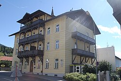 Das Gebäude wurde 1893 nach Plänen von Max Haas als Igler Rathaus erbaut und später als Volksschule und als Postamt genutzt.[15] Das landhausartiges Amtsgebäude hat Holzbalkone und geometrisierenden Putzdekor.[16] | BDA-Hist.: Q37771002 Status: § 2a Stand der BDA-Liste: 2024-06-15 Name: Wohnhaus, ehem. Schulhaus GstNr.: 706/3 Altes Rathaus, Igls |