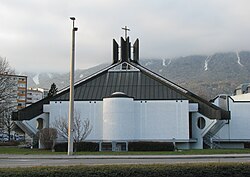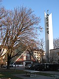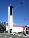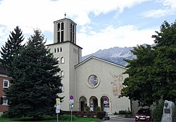 | Diese Datei zeigt das im Tiroler Kunstkataster erwähnte Objekt mit der ID 72774 . ( auf tirisMaps , PDF , weitere Bilder auf Commons , Wikidata ) | Eigenes Werk | Luftschiffhafen | Datei:Auferstehungskirche Innsbruck 03.jpg | |