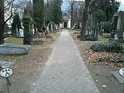 Der k.u.k. Militärfriedhof wurde 1831 in den damals unbebauten Pradler Feldern angelegt, 1842 mit einer Mauer umgeben und 1850 erweitert. 1844 wurde die kleine Kapelle geweiht.[5] | BDA-Hist.: Q15115929 Status: Bescheid Stand der BDA-Liste: 2024-06-15 Name: Militärfriedhof GstNr.: 1859, 1858/2 Militärfriedhof Pradl |