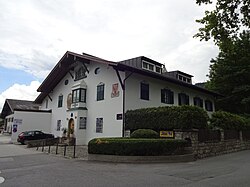 Der Dorfbrunnen besteht aus einem gestreckten, sechseckigen Granittrog von 1865 und einer hölzernen Brunnensäule. Darauf steht unter einer Überdachung eine barockzeitliche, gefasste Skulptur des hl. Florian, die 1913 gestiftet wurde.[19] Diese ersetzt die ursprüngliche Christusfigur aus dem 19. Jahrhundert.[20] | BDA-Hist.: Q37717259 Status: § 2a Stand der BDA-Liste: 2024-06-15 Name: Brunnen hl. Florian GstNr.: 2922/1 |