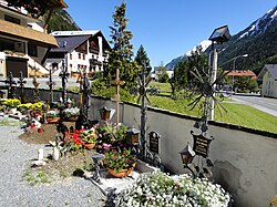 | Diese Datei zeigt das im Tiroler Kunstkataster erwähnte Objekt mit der ID 22601 . ( auf tirisMaps , PDF , weitere Bilder auf Commons , Wikidata ) | Eigenes Werk | Monika Dittrich | Datei:Friedhofischgl1.jpg | |