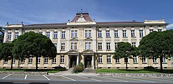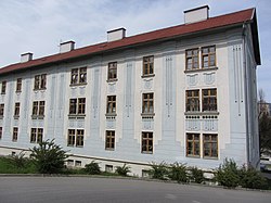 Das Schulgebäude wurde laut Inschrift 1902/03 erbaut. Es ist in den typischen Formen ärarischer Architektur dieser Zeit gehalten, am Mittelrisaliten befindet sich aber Rankendekoration und das Relief eines Männerkopfs mit Judenhaube en face. | BDA-Hist.: Q38180129 Status: § 2a Stand der BDA-Liste: 2024-06-15 Name: Schule GstNr.: 322/3 Schulgebäude Herrengasse, Judenburg |
