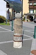 Mit polygonalen Schaft und einer Kugel als Aufsatz. | BDA-Hist.: Q37874339 Status: § 2a Stand der BDA-Liste: 2024-06-15 Name: Marktstein GstNr.: 1367/14 |
