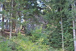 Die um 1200 errichtete Burg verlor durch die Errichtung des Schlosses im 16. Jahrhundert an Bedeutung und verfällt seit dem 18. Jahrhundert. Vom viergeschoßigen rechteckigen Palas und dem Bergfried sind teils bis zu zehn Meter hohe Mauern erhalten.[18] | BDA-Hist.: Q1015573 Status: Bescheid Stand der BDA-Liste: 2024-06-15 Name: Burgruine Weidenburg GstNr.: 1539/3 Burgruine Weidenburg |
