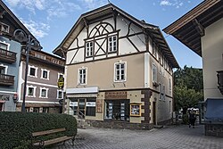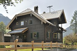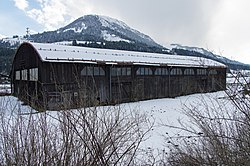 | Fabriksgebäude, Holzfachwerkshalle, Eichenhalle. Im Hintergrund der Gaisberg (1770m). | Eigenes Werk | WOKRIE | Datei:Kirchberg-0401.jpg | |