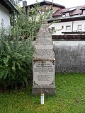 Der Grabstein für Rupert Wintersteller, seine Eltern und seine Frau Anna wurde in der ersten Hälfte des 19. Jahrhunderts von Josef Granbacher geschaffen. Er besteht aus einem würfelförmigen Sockel, einem giebelartigen Stein und wird von einem Kreuz bekrönt.[6] | BDA-Hist.: Q38152540 Status: § 2a Stand der BDA-Liste: 2024-06-15 Name: Wintersteller-Grabstein am alten Friedhof GstNr.: 1/1 Grave of Rupert Wintersteller |