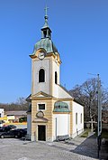 | Die röm.-kath. Filialkirche hl. Johann d. Täufer in der niederösterreichischen Gemeinde Klein-Neusiedl . Die barocke Saalkirche mit vorgestelltem Westturm und eingezogener Halbkreisa wurde 1725 errichtet. | Eigenes Werk | C.Stadler/Bwag | Datei:Klein-Neusiedl - Kirche.JPG | |