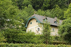 Gut Frauental, repräsentativer Landsitz mit Nebengebäuden, urkundlich 1570 Freintal, 1730 zum Eisenhammerwerk ausgebaut, 1786 als Herrenhaus wiedererrichtet, 1837 aufgestockt und um parallel stehendes Schweizerhaus erweitert, ab 1877 Werkanlagen abgebrochen, zweigeschoßiger Hauptbau mit späthistoristischer Fassade mit neobarockem Dekor | BDA-Hist.: Q37913709 Status: § 2a Stand der BDA-Liste: 2024-06-15 Name: Wohnhaus GstNr.: .39/2 Gut Frauental in Kleinzell |