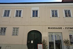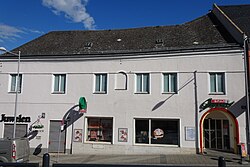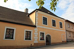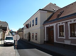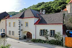 Das Bauernhaus Hauptstraße 111 ist ein zweigeschoßiger Bau des 16. Jahrhunderts mit gestaffelter Front und Walmdach.[2] | BDA-Hist.: Q38018167 Status: Bescheid Stand der BDA-Liste: 2024-06-15 Name: Bauernhaus, Postgebäude GstNr.: 145/2, 144/1 Hauptstraße 111, Höflein an der Donau |