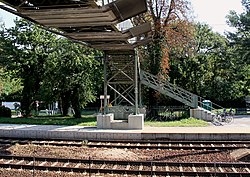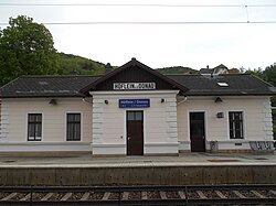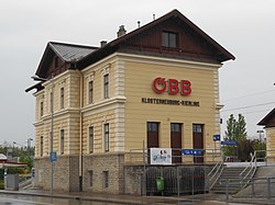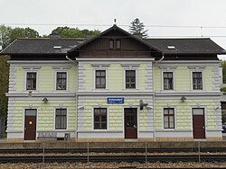 Der Bau aus dem Jahr 1885 hat einen übergiebelten Mittelrisaliten. | BDA-Hist.: Q38089643 Status: Bescheid Stand der BDA-Liste: 2024-06-15 Name: Aufnahmsgebäude Höflein an der Donau GstNr.: 308 Aufnahmsgebäude Bahnhof Höflein an der Donau |