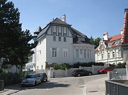 Die 1904 im Stil der Secession umgebaute Villa hat eine durchgehende Glasfront. | BDA-Hist.: Q38017800 Status: Bescheid Stand der BDA-Liste: 2024-06-15 Name: Villa van Hamme GstNr.: 681/2 |
