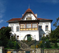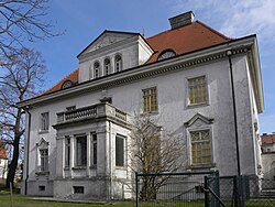 Die 1899 von Franz Olbricht erbaute klassizierende Villa weist offene Balkone über Doppelsäulen auf. | BDA-Hist.: Q38017733 Status: Bescheid Stand der BDA-Liste: 2024-06-15 Name: Villa Olbricht GstNr.: 627/3 Villa Olbricht |