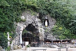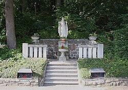 Eine Nachbildung der Mariengrotte von Lourdes am westlichen Ortsrand wurde in den Jahren von 1923 bis 1925 auf Anregung von Pater Caspar Hutter (1881–1957) errichtet. | BDA-Hist.: Q1872283 Status: § 2a Stand der BDA-Liste: 2024-06-15 Name: Maria Lourdes-Grotte GstNr.: 414/17 Lourdesgrotte, Wienerwald |
